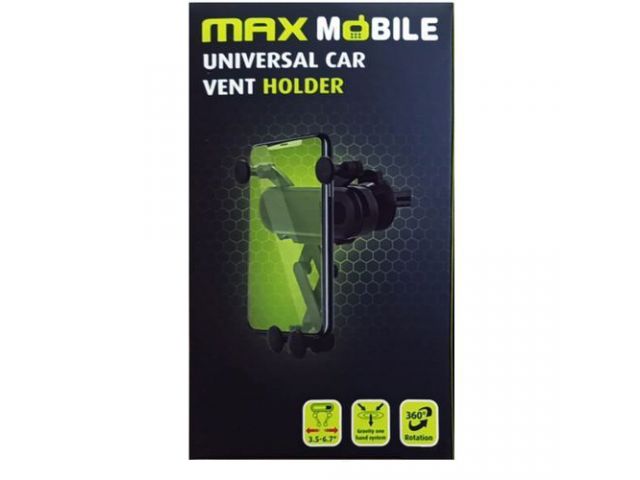 Univerzalno držalo za vse vrste mobilnih in drugih naprav do velikosti 6,7". Enostavna namestitev na režo prezračevalnika avtomobila. Nosilec ima t.i. "Gravity one hand system", ki omogoča namestitev in odstranitev telefon z držala z eno roko Stabilizacija mobitela na 5 mestih Ne ustavlja pretoka zraka iz ventilacije 360° rotacija 24-mesečna garancija