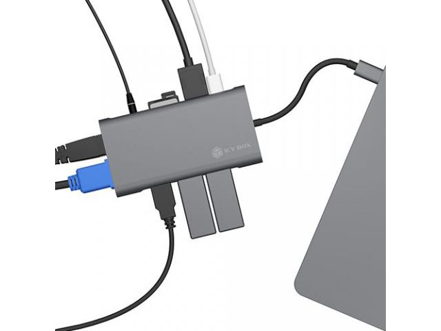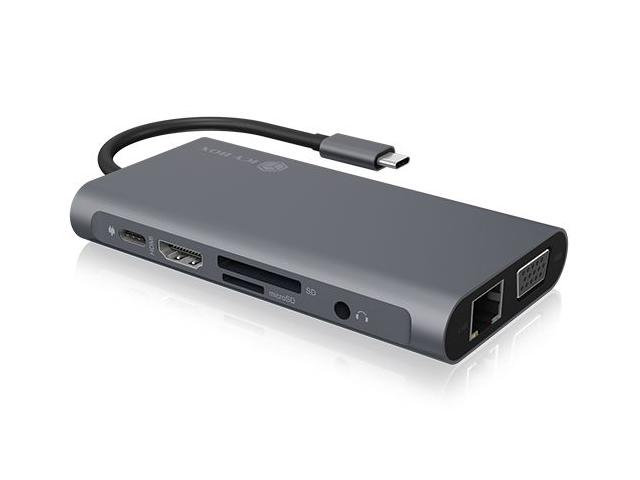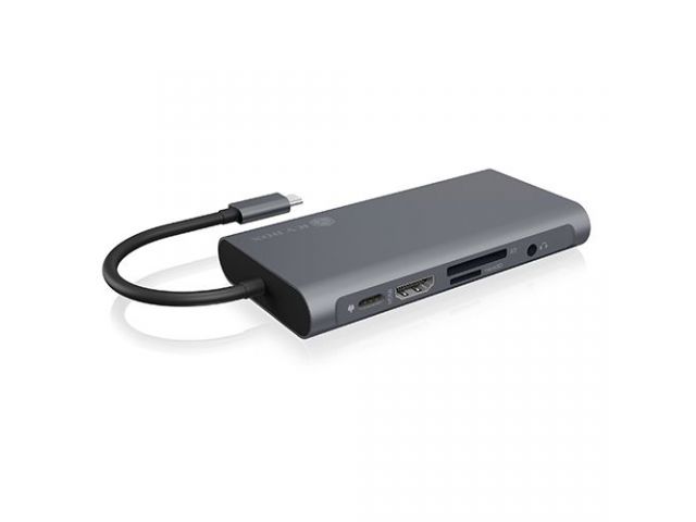 10-v-1 USB Type-C® IB-DK4040-CPD Enostavna povezava – številne prednosti Popolno združuje visokokakovosten videz in učinkovito tehnologijo z zelo kompaktno velikostjo. Vrhunska aluminijasta priključna postaja ni le dobrega videza, ampak nudi tudi visoko udobje med uporabo. Ta rešitev je primerna za vsak prostor, kot so zasebni ali pisarniški prostori. VEČ POVEZAV: Priklopna postaja 10-v-1 USB Type-C vašemu prenosniku ali PC-ju doda USB-C, 3x USB-A 3.0, HDMI, VGA, čitalnik kartic SD/microSD, 3,5 mm kombinirani avdio priključek in Gigabit LAN UČINKOVITO: Preslikajte svoj zaslon na dva dodatna monitorja. Možna ločljivost pri povezavi prek HDMI do 3840x2160/30 Hz, z VGA do 1920x1080@60 Hz HITRO: USB Port 3.0 priklopne postaje omogočajo hitrosti prenosa podatkov do 5 Gbps. Z vmesnikom LAN (RJ45) lahko tudi hitro brskate po internetu POPOLNOMA NAPOLNJEN: Zahvaljujoč Power Delivery se povezane naprave polnijo z do 100 W prek opcijsko na voljo polnilnika USB-C. To zagotavlja, da imate vedno dovolj energije. ZVOČI SE DOBRO: Slušalke, naglavne slušalke ali mikrofon se priključijo prek 3,5 mm avdio kombiniranega priključka. Dober zvok je zagotovljen v vseh situacijah Model IB-DK4040-CPD Material Aluminij + plastika Barva antracitna / črna Hitrost USB 3.0 do 5 Gbit/s, podprt UASP Port za polnilnik: 1x polnilna Port Type-C™ za napajanje do 100 W (20 V@5 A) HDMI® Do 1x 3840x2160@30 Hz Napajanje z vodilom - Podpira do 100 W iz originalnega napajanja računalnika Operacijski sistem Windows® 10, macOS® Neto teža 0,164 kg Dimenzija artikla 115x60x17 mm