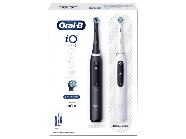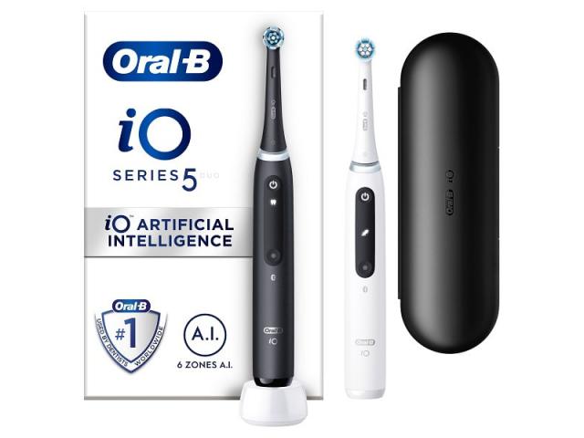 Električna zobna ščetka iO 5 prinaša najboljšo tehnologijo znamke Oral-B: kombinacijo okrogle glave ščetke po navdihu zobozdravstvene opreme z nežnimi mikrovibracijami za profesionalen občutek čiščenja v udobju vašega doma. Pametni senzor pritiska pomaga preprečiti premočno ali prenežno ščetkanje za boljšo zaščito dlesni. Umetna inteligenca prepozna vaš način ščetkanja zob in vas vodi k boljšemu umivanju zob vsak dan. Povezuje se z brezplačno aplikacijo Oral-B za sledenje in vodenje ščetkanja v realnem času skozi 6 območij ščetkanja. Za najboljše rezultate zamenjajte glavo zobne ščetke Oral-B iO vsake 3 mesece. NAJBOLJŠA GREBICA ZA UMIVANJE ZOB, ki jo ponuja Oral-B, zahvaljujoč REVOLUCIONARNI iO TEHNOLOGIJI za občutek profesionalne čistoče in nežnega ščetkanja zob. Ščetka, zasnovana za ljudi z občutljivimi zobmi in dlesnimi, združuje edinstveno okroglo glavo zobne ščetke Oral-B z nežnimi mikrovibracijami za občutek svežine, čistih ust in 100 % bolj zdrave dlesni v enem tednu v primerjavi z običajno klasično zobno ščetko. 5 NAČINOV DELA za umivanje zob, prilagojenih vašim potrebam: Daily Clean, Intense Clean, Whitening, Sensitive, Super Sensitive. UMETNA INTELIGENCA prepozna vaš stil ščetkanja in vas vodi pri umivanju zob, tako da ne zgrešite niti ene površine. PAMETNI SENZOR PRITISKA z rdečo, belo in zeleno označuje, ali ščetkate premočno, prerahlo ali z ustreznim pritiskom. Vsebina: 1 ročaj iO5 z 1 glavo zobne ščetke, 1 potovalni kovček, 1 polnilec, 1 nadomestno držalo za glavo