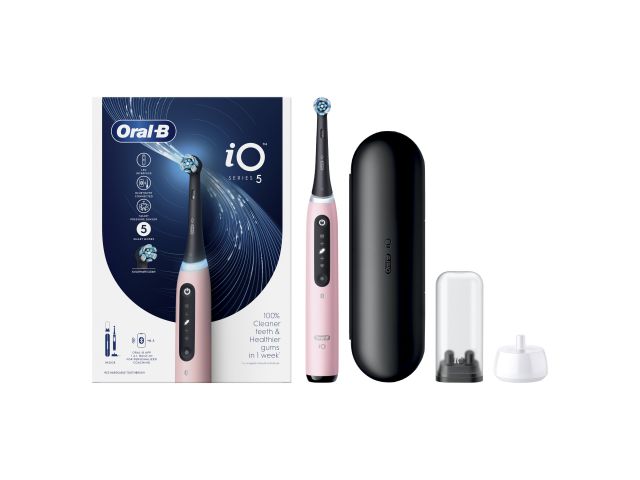 Električna zobna ščetka iO 5 prinaša najboljšo tehnologijo znamke Oral-B: kombinacijo okrogle glave ščetke po navdihu zobozdravstvene opreme z nežnimi mikrovibracijami za profesionalen občutek čiščenja v udobju vašega doma. Pametni senzor pritiska pomaga preprečiti premočno ali prenežno ščetkanje za boljšo zaščito dlesni. Umetna inteligenca prepozna vaš način ščetkanja zob in vas vodi k boljšemu umivanju zob vsak dan. Povezuje se z brezplačno aplikacijo Oral-B za sledenje in vodenje ščetkanja v realnem času skozi 6 območij ščetkanja. Za najboljše rezultate zamenjajte glavo zobne ščetke Oral-B iO vsake 3 mesece. NAJBOLJŠA GREBICA ZA UMIVANJE ZOB, ki jo ponuja Oral-B, zahvaljujoč REVOLUCIONARNI iO TEHNOLOGIJI za občutek profesionalne čistoče in nežnega ščetkanja zob. Ščetka, zasnovana za ljudi z občutljivimi zobmi in dlesnimi, združuje edinstveno okroglo glavo zobne ščetke Oral-B z nežnimi mikrovibracijami za občutek svežine, čistih ust in 100 % bolj zdrave dlesni v enem tednu v primerjavi z običajno klasično zobno ščetko. 5 NAČINOV DELA za umivanje zob, prilagojenih vašim potrebam: Daily Clean (dnevno čiščenje), Intense Clean (intenzivno čiščenje), Whitening (beljenje), Sensitive (nežno), Super Sensitive (izjemno nežno) UMETNA INTELIGENCA prepozna vaš stil ščetkanja in vas vodi ščetkanje zob, da ne zgrešite nobene površine PAMETNI SENZOR PRITISKA rdeče, belo in zeleno kaže, ali ščetkate premočno, prerahlo ali z ustreznim pritiskom. Vsebina: 1 ročaj iO5 z 1 glavo zobne ščetke, 1 potovalni kovček, 1 polnilec, 1 držalo zamenljive glave