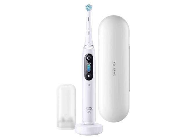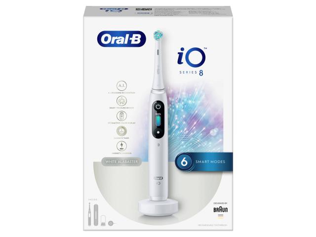 Vsebina: 1 ročaj iO8 z 1 glavo ščetke Ultimate Clean, 1 vrhunski potovalni kovček, 1 polnilnik, 1 nadomestno držalo za glavo