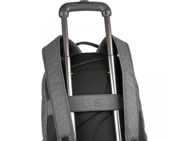 Nahrbtnik Tucano Speed Backpack za 15,6" prenosne računalnike in 16" MacBook Pro v barvi oglje je izdelan iz tkanine z videzom mélange iz reciklirane plastike. Praktičen in prostoren notranji predal ima dvojni zaščitni žep za prenosnike in tablice. Zaradi nastavljivih podloženih naramnic, ergonomskega hrbta in zunanjega sprednjega žepa je praktičen in uporaben za delo in prosti čas. Priročen trak za voziček na hrbtni strani omogoča enostavno pritrditev na prtljago. Ključne značilnosti: - Notranji žepi za prenosne računalnike in tablične računalnike - Nastavljive oblazinjene naramnice - Trak za pritrditev na voziček - Nahrbtnik iz mélange tkanine iz reciklirane plastike