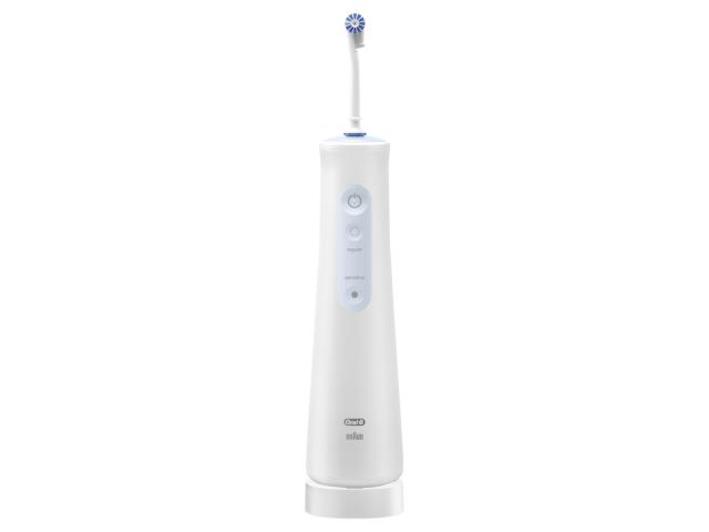 Izboljšajte svojo rutino ustne nege z ustno prho Oral-B Aquacare s tehnologijo Oxyjet, ki bo izboljšala nego dlesni. - Tehnologija Oxyjet: voda, obogatena z mikromehurčki, izboljša čistilno delovanje - Nastavljiv način: pulzna nastavitev, za natančno čiščenje - 2 intenzivnosti: prilagodite čiščenje z običajnim ali blagim pritiskom vode - 2 curka: izberite natančen ali rotacijski vodni curek - Brezžično delovanje: enostavno rokovanje, brez dodatkov - Zaščitite zobozdravstveno delo: nežno odstranite hrano, ki se je zagozdila med žicami in naramnicami