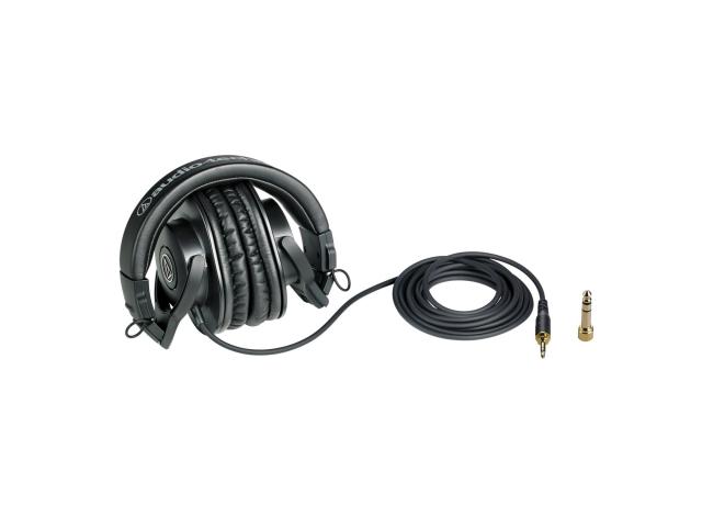 Audio-Technica ATH-M30X iz serije M so profesionalne slušalke, ki prinašajo kombinacijo napredne tehnologije in visokokakovostnih materialov. Pri poslušanju ponujajo odlično udobje in izolacijo ter izjemno čisto, natančno reprodukcijo zvoka z bolj izrazitimi srednjimi frekvencami. Slušalke so namenjene studijski uporabi, vendar jih je zaradi zložljivega okvirja mogoče vzeti tudi na teren. ODLIČEN ZVOK ATH-M30x s 40 mm gonilniki ponuja natančno reprodukcijo zvoka s poudarjenimi srednjimi frekvencami. PRILAGODLJIVOST Slušalke so namenjene studijski uporabi, vendar jih lahko zaradi zložljivega okvirja vzamete tudi na terensko snemanje. ODLIČNO UDOBJE Ušesne blazinice se tesno prilegajo ušesom in zagotavljajo odlično zvočno izolacijo tudi v glasnejšem okolju. ATH-M30X je izdelan iz visokokakovostnih materialov.