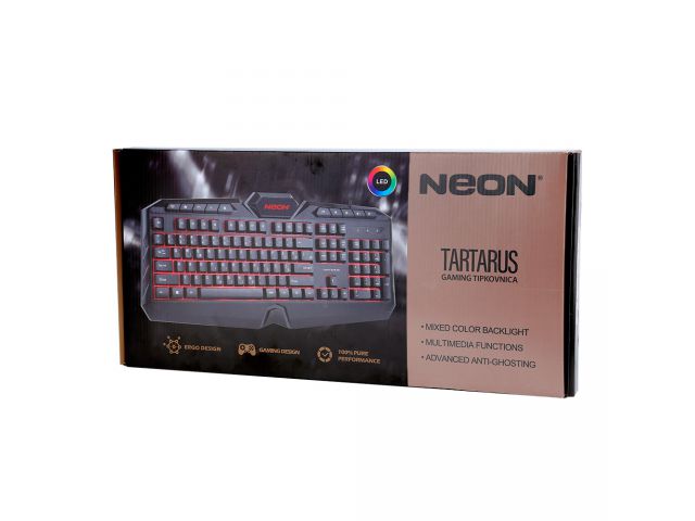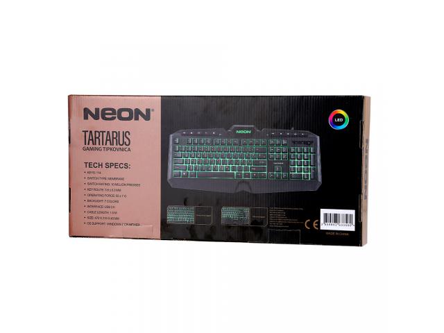 Število tipk: 114 Vrsta stikala: membrana Življenjska doba stikala: približno 10 milijonov klikov Hod tipk: 3,6 ± 0,3 mm Moč delovanja: 55 ± 7 g Osvetlitev ozadja: 7 barv Vmesnik: USB 2.0 Dolžina kabla: 1,5 m Velikost: 470 x 215 x 40 mm Operacijski sistem: Windows 7 ali novejši #NEONize Yourself