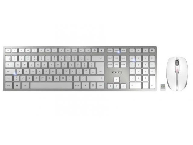 NAMIZNI KOMPLET ZA POLNJENJE Z NAJVIŠJIMI STANDARDI OBLIKOVANJA IN FUNKCIONALNOSTI CHERRY DW 9100 SLIM združuje inovativne funkcije, izjemno izdelavo in zelo tanek dizajn Mešanica estetike in optimalnega udobja je popolna za vsako sodobno mizo BREZŽIČNI RF ALI BLUETOOTH PRENOS JE VAŠ Zakaj izbrati eno ali drugi ko lahko imaš oboje? Stikalo na tipkovnici in miški omogoča takojšen preklop med Bluetooth in 2,4 GHz povezljivostjo.V paketu je vključen USB sprejemnik za 2,4 GHz brezžični prenos. V obeh primerih se podatki prenašajo s šifriranjem AES-128 na razdalji do 10 metrov. KONCEPT POLNJENJA NADALJUJTE DELO MED POLNJENJEM. Litijeve baterije za ponovno polnjenje napajajo tipkovnico in miško več tednov z enim polnjenjem. Tudi ko indikatorji stanja LED kažejo, da baterije so prazne, lahko udobno nadaljujete z delom, medtem ko brezžično namizno garnituro enostavno polnite s priloženim polnilnim kablom USB-C. Da bo baterija zdržala še dlje, ima komplet stikalo za vklop/izklop. dizajn in visoka kakovost gresta z roko v roki s CHERRY DW 9100 SLIM Kovinska plošča zagotavlja največjo moč in stabilnost, medtem ko tipkovnica ostane ravna Ko gre za prilagodljivost, ne pušča nezaželenega Ločeno, magnetno podporno palico je mogoče namestiti v nekaj sekundah omogoča strmejši kot tipkanja Ko ni v uporabi, ga je mogoče odstraniti prav tako hitro NAJVEČJE UDOBJE VSE POTREBUJE KEYNOARD Osnova za odlično izkušnjo tipkanja CHERRY DW 9100 je visokokakovosten škarjasti mehanizem SX Definirana in natančna točka pritiska je podobna tipkovnici prenosnega računalnika in je bistvenega pomena za produktivnost pri delu Zelo uporabne so tudi tri statusne lučke LED, vgrajene v tipke. Ni vam treba gledati, ali je tipka aktivirana tipka shift, tipka za pomikanje ali tipke Num-Lock Te tipke tudi utripajo kot opozorilo da je baterija skoraj prazna Dodatne tipke na brezžični tipkovnici so izbrane z mislijo na praktičnost. Namizje ima samo najpomembnejše in najpogosteje uporabljene tipke: "Windows lock", "Odpri brskalnik", "Volume Down", "Volume Up", "Mute" in "Open Calculator" To ohranja brezžično tipkovnico čisto in zelo enostavno za uporabo. DIZAJN MIŠKE SE SREČA UDOBJE S svojimi številnimi funkcijami in gumiranimi stranicami je brezžična miška vreden partner tipkovnici. Kompaktna oblika ustvarja idealno obliko za roki, ki se vam zdi takoj znana Stikalo DPI omogoča preklapljanje med tremi stopnjami s pritiskom na gumb: 1000/1600/2400 dpi. Dvobarvna lučka stanja zagotavlja informacije o stanju baterije, stanju polnjenja, izbrani ločljivosti ali stanju povezave kadar koli. Brezžična miška, ki je kos kateri koli mobilni uporabi, ima izjemno vzdržljivo kolesce miške. Brez težav se pomika ves dan. Tudi sprejemnik USB ima svoje mesto v miški. Magnet jo ohranja varno in vedno pripravljeno za uporabo Lastnosti odločilne prednosti Izbirna povezava prek Bluetooth ali brezžične enote 2,4 GHz - oboje s šifriranjem AES-128 Litijeve baterije je mogoče polniti v miški in tipkovnici prek LED-indikatorji stanja vrat USB-C prikazujejo nizko preostalo napolnjenost baterije, stanje napolnjenosti in ločljivost miške Dodatne lučke statusa za tipke CAPS LOCK, NUM in SCROLL Izjemno majhen nano sprejemnik za brezžično delovanje 6 gumbov miške in kolesce za pomikanje Natančen senzor z nastavljivo ločljivostjo v treh koraki do 2.400 dpi Trpežne nalepke na tipkah Trdna kovinska plošča v tipkovnici za največjo stabilnost Natančen škarjasti mehanizem za idealen občutek pri delu Magnetna podporna palica za nastavitev naklona