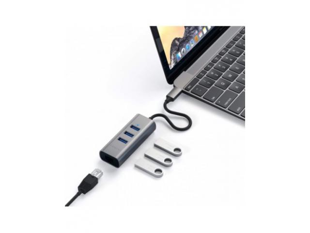 Satechi Type-C 2-v-1 USB 3.0 aluminijasti adapter s 3 vrati in ethernetnimi vrati je hitra omrežna rešitev za uporabnike prenosnih ali namiznih računalnikov. Omogoča neposredno povezavo z omrežjem prek vrat USB, kar odpravlja težave z razstavljanjem računalnika. Adapter vam omogoča takojšnjo povezavo z omrežjem 10/100/1000 Mbps iz razpoložljivih vrat USB na vašem računalniku.